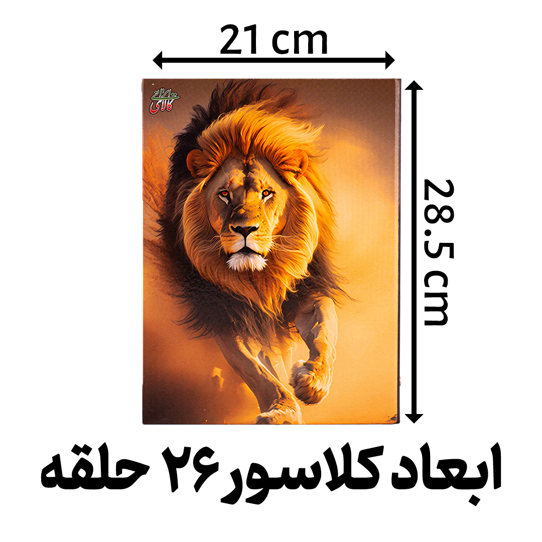 کلاسور 26 حلقه تهیه شده از جنس مقوای ضخیم صنعتی با روکش کاغذ چاپ شده طرح دار به همراه روکش سلفون مات یا براق که دارای تنوع طرح بالا و ترکیب رنگ زیبایی است؛ جنس قفل کلاسور از جنس فلز می‌باشد؛ که برای باز و بسته شدن‌های متوالی جهت چیدمان و جابجایی کاغذ‌ها دارای مقاومت بالاتری نسبت به قفل پلاستیکی می باشد و ظرفیت قرار دادن 160 برگ کاغذ در آن وجود دارد. از ویژگی های این محصول قابل استفاده بودن کاغذ های 26 حلقه ی موجود در بازار برای این کلاسور می باشد. محصول به همراه 80 برگ کاغذ و 4 عدد دیوایدر مقوایی ارسال می شود