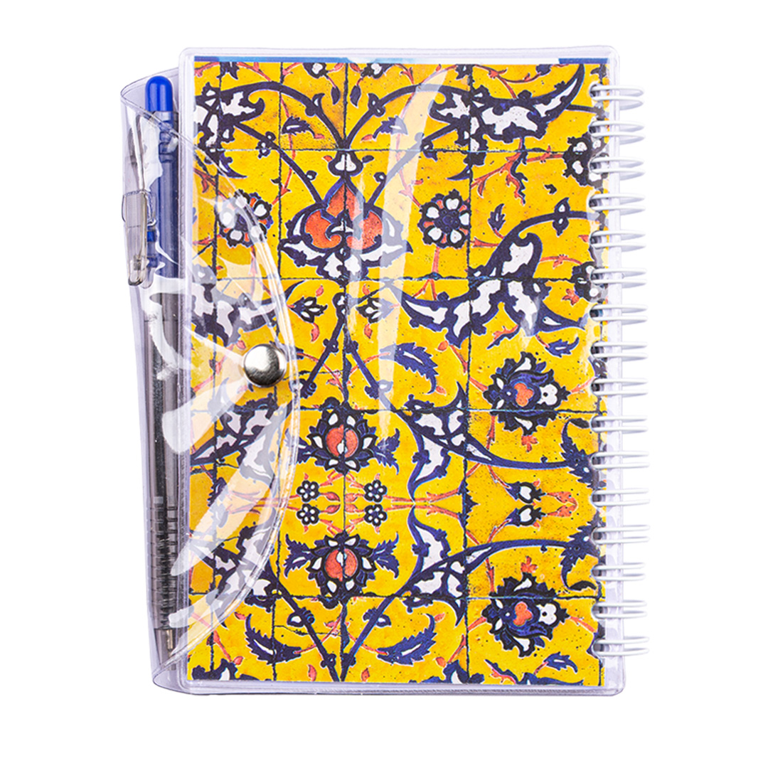دفتر یادداشت سلفونی مدل مجلد دکمه دار کاشی کاری زرد