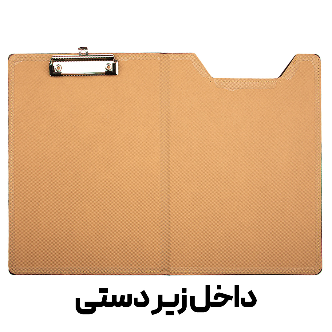 تخته شاسی سایز A4 تهیه شده از جنس چرم مصنوعی با حالت کلاسوری(تاشو)که رویه آن از جنس چرم مصنوعی بافت دار در ابعاد ۳۲x۲۲.۵x۳ سانتی متر که در حدود 470 گرم و داخل آن از جنس پارچه جودانه استفاده شده که دور دوخت شده است و دارای قفل فلزی برای نگهداری کاغذ می باشد