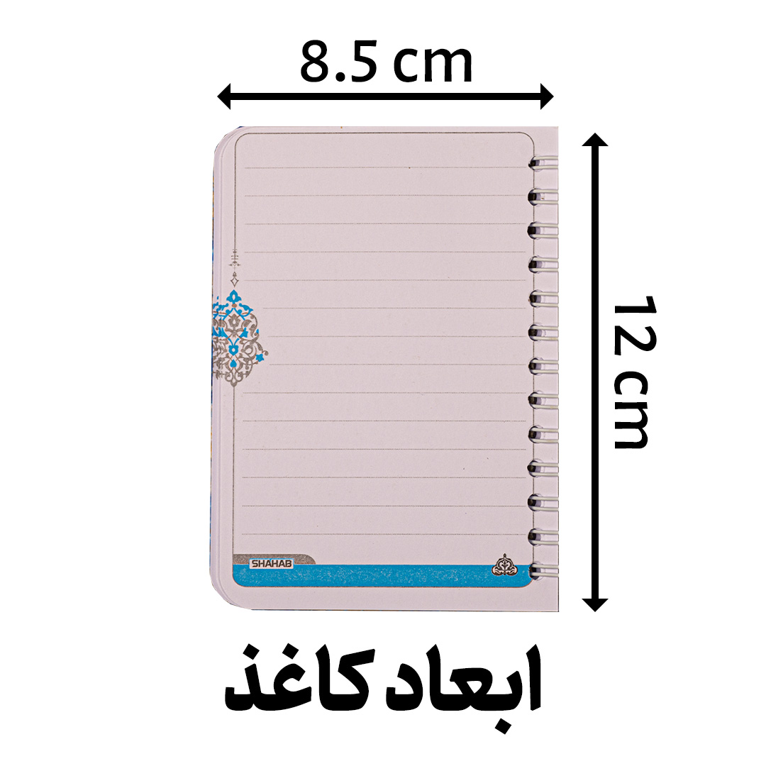دفترچه یادداشت 80 برگ ،روکش پارچه ای، فنر دوبل فلزی، دفترچه سیمی 80 برگ پارچه ای دور دوخت شده که در ابعاد کاغذ 12 سانت در 8.5 سانت می باشد. از ویژگی های این محصول می توان به فنر دوبل فلزی اشاره کرد، جنس پارچه رویه از جنس مخمل بوده و دارای طرح و نقش زیبایی می باشد.