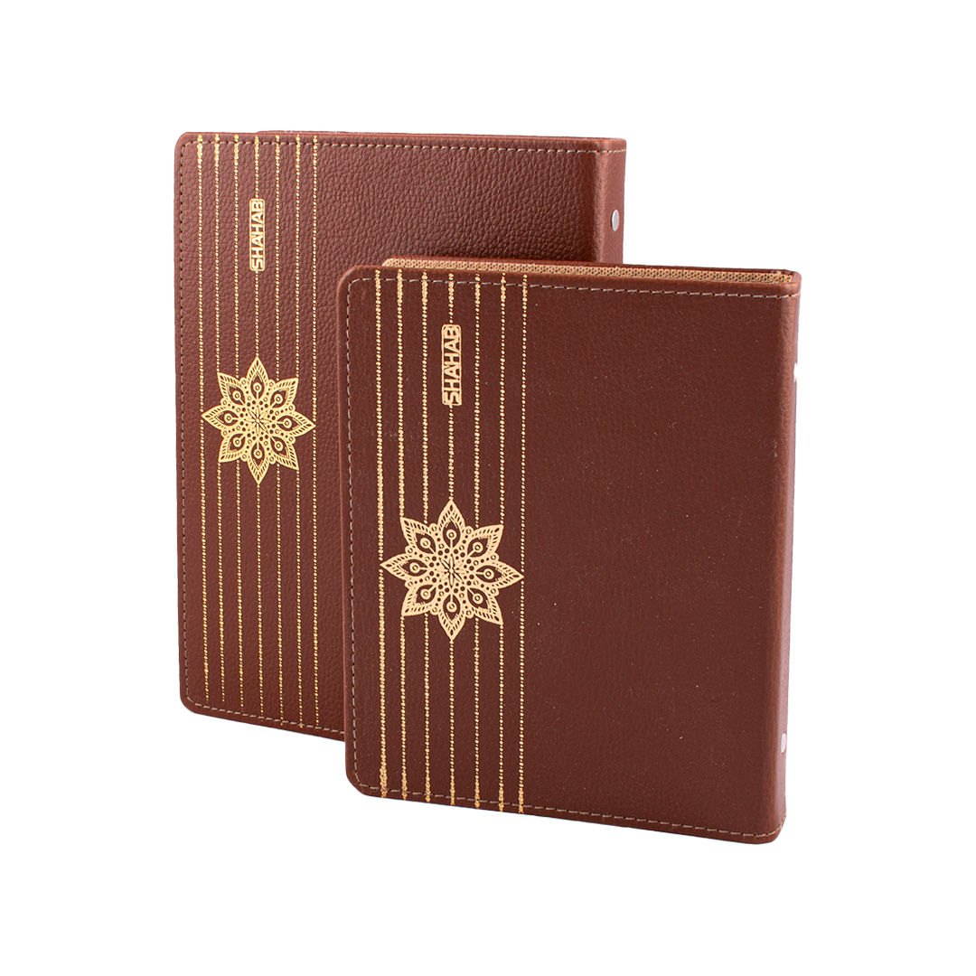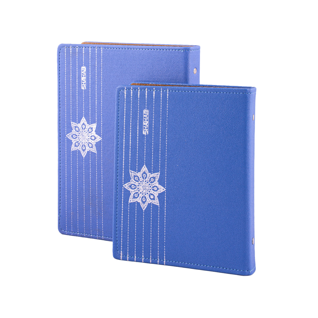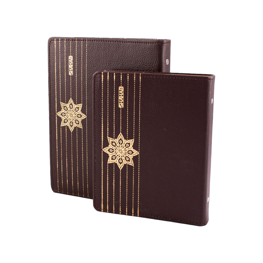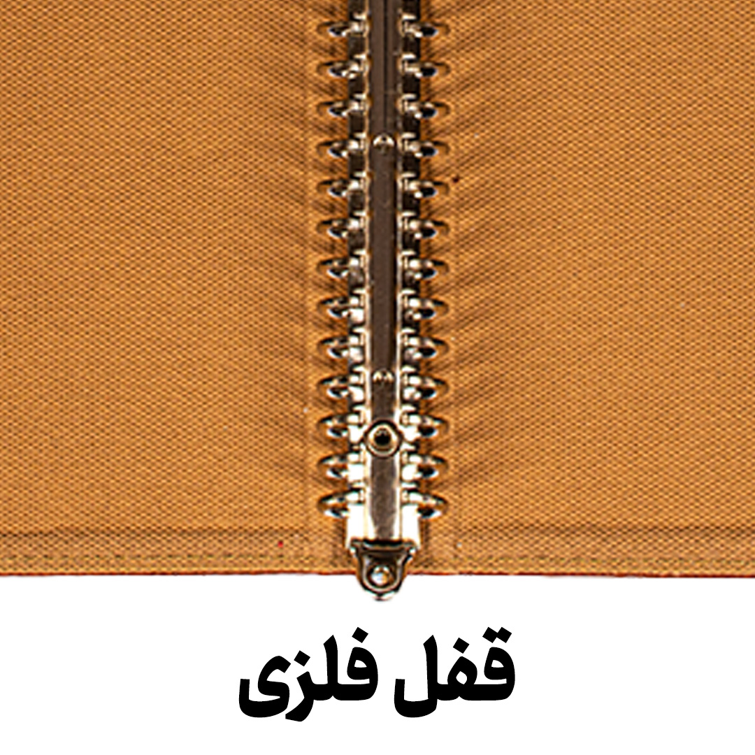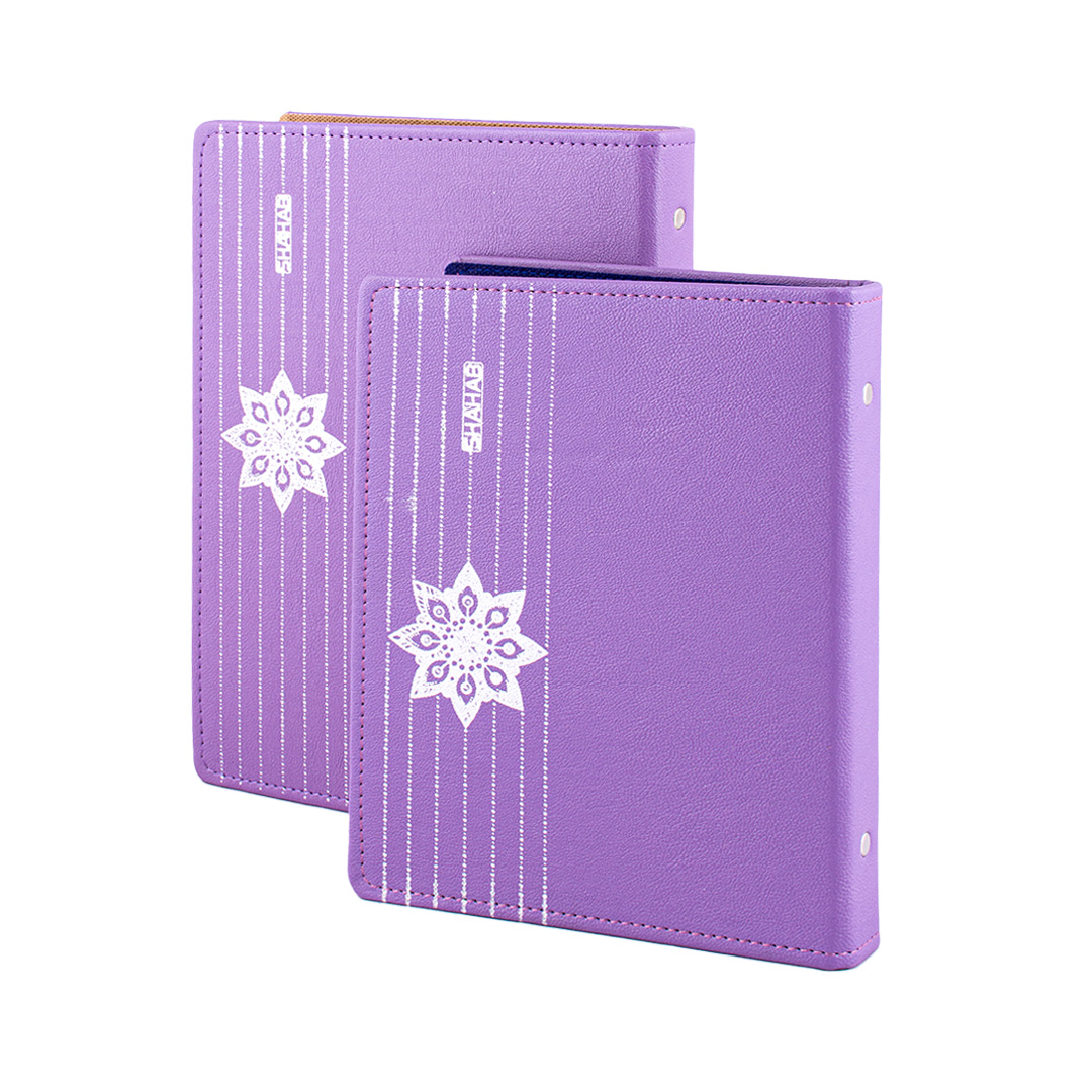 محصول اول: کلاسور 26 حلقه، روکش چرم مصنوعی، قفل فلزی حلقه ها، به همراه 80 برگ کاغذ با 4 عدد مقسم رنگی مقوایی