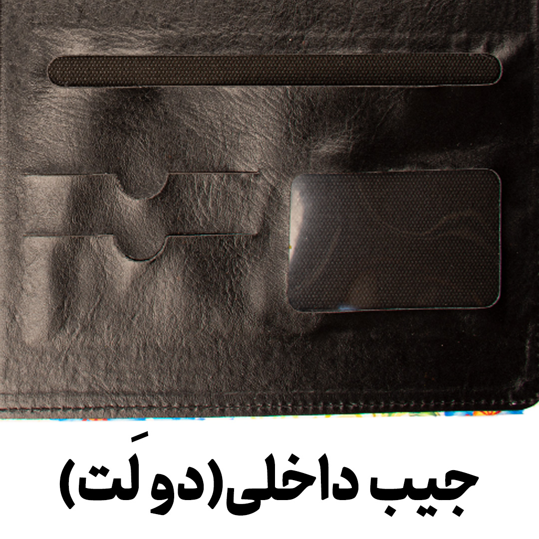 سایز A۴، قفل فلزی، کلاسوری(تاشو)، دارای جیب داخلی، دور دوخت شده